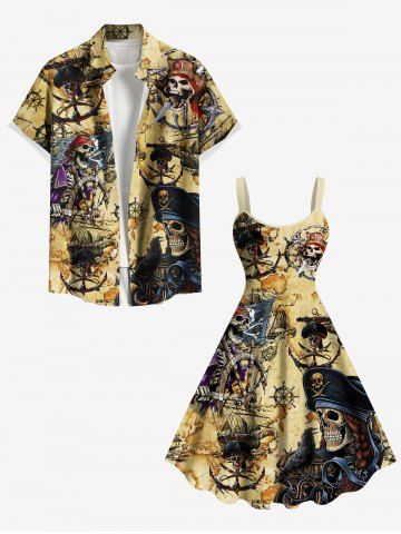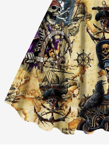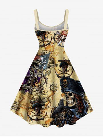 Plus Size Skull Pirate Anchor Ship Rudder Map Cruise Print Tank Dress - Light Coffee - L