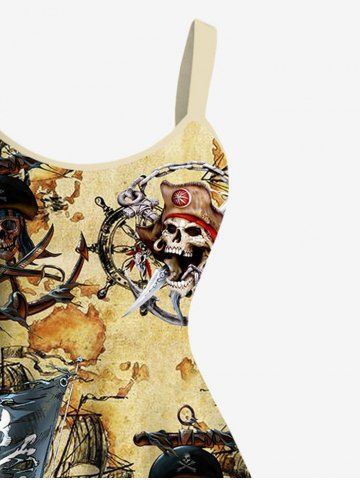 Plus Size Skull Pirate Anchor Ship Rudder Map Cruise Print Tank Dress - Light Coffee - 5x