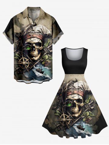 Graphic Dresses > Plus Size Skull Pirate Map Sea Sailboat Compass Print Hawaii Cruise Vintage 50s Swing A Line Dress