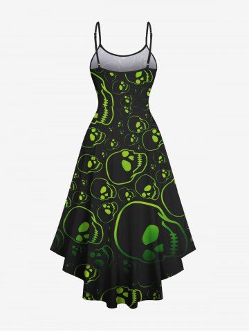 Plus Size Skull Print Halloween High Low Asymmetric Cami Dress - Black - 5x