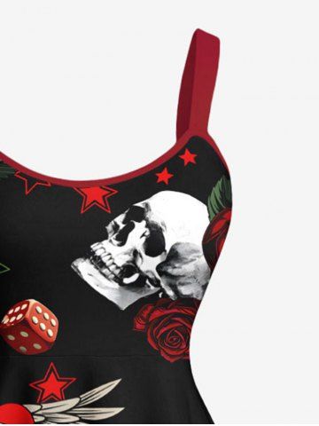 Plus Size Skull Rose Flower Heart Sword Print Halloween A Line Dress - Black - Xxs