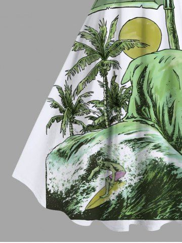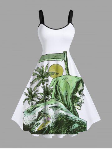 Plus Size Skull Sea Wave Surfer Coconut Tree Sun Scythe Print Hawaii A Line Tank Dress - White - 2x