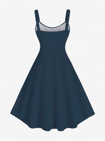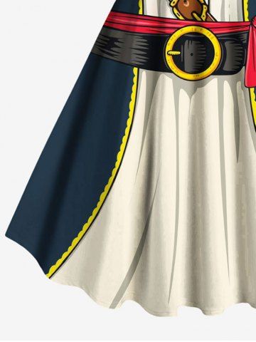 Plus Size Skull Ship Rudder Knife Pirate Costume Print Hawaii Tank Dress - Midnight Blue - 6x