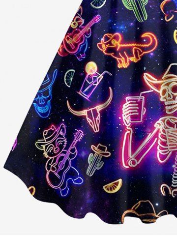 Plus Size Skull Skeleton Fruit Juice Animal Guitar Print Hawaii Tank Dress - Black - S