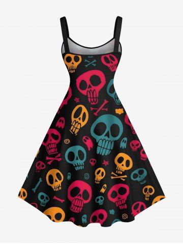 Plus Size Skull Star Bone Print Halloween A Line Tank Dress - Black - 1x