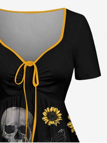 Plus Size Skull Sunflower Butterfly Print Cinched Hawaii Dress - Black - 5x