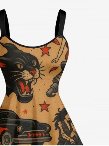 Plus Size Skull Tiger Fire Flame Car Print A Line Dress - Light Brown - Xxs