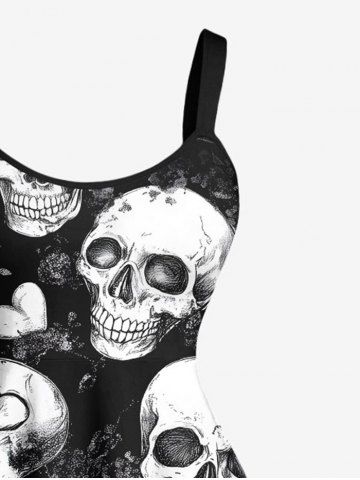Plus Size Skulls Bowknot Heart Flowers Print Tank Dress - Black - Xxs