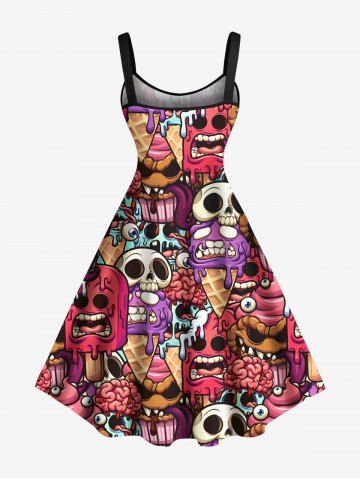 Graphic Dresses > Plus Size Skulls Brain Ice Cream Print Hawaii Tank Dress