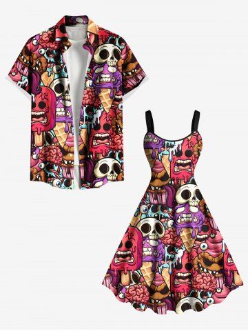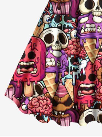 Graphic Dresses > Plus Size Skulls Brain Ice Cream Print Hawaii Tank Dress