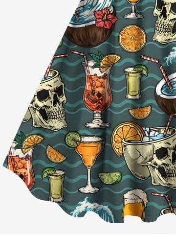 Plus Size Skulls Coconut Orange Juice Flowers Print Hawaii Tank Dress - Green - S