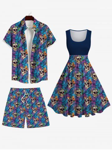 Graphic Dresses > Plus Size Skulls Coconut Tree Palm Leaf Flowers Print Hawaii 1950s Vintage Dress