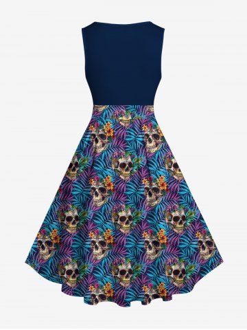 Graphic Dresses > Plus Size Skulls Coconut Tree Palm Leaf Flowers Print Hawaii 1950s Vintage Dress