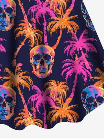 Plus Size Skulls Coconut Tree Print Hawaii Vintage A Line Dress - Multi-a - S