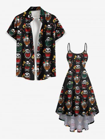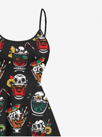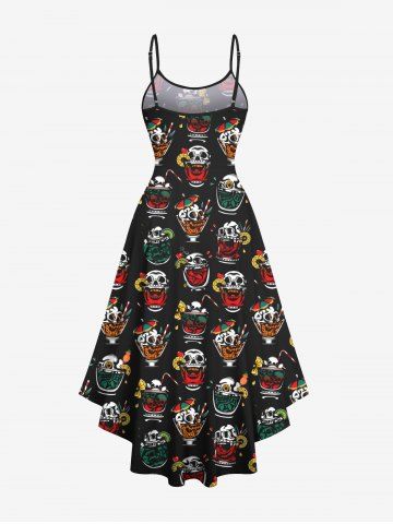 Plus Size Skulls Colorful Fruit Juice Print High Low Hawaii Cami Dress - Black - S