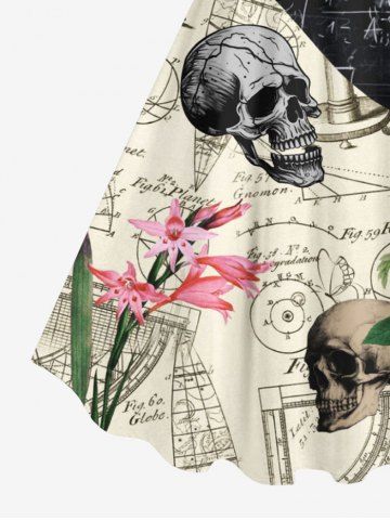 Plus Size Skulls Floral Mathematical Geometry Print Vintage A Line Backless Tank Dress - Multi-a - M