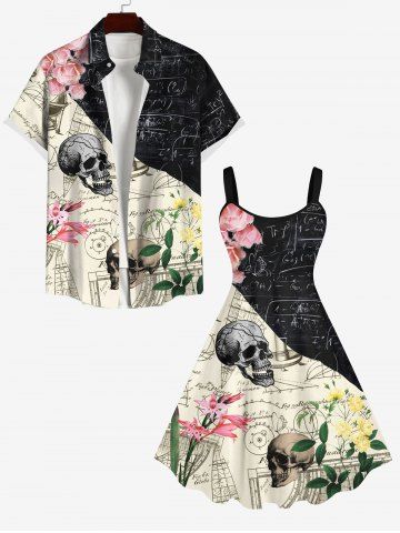 Skulls Floral Mathematical Geometry Print Plus Size Matching Set For Couples
