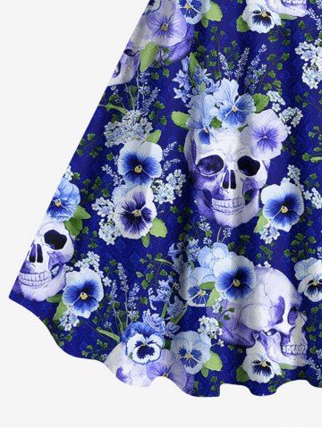 Plus Size Skulls Flower Leaf Print Hawaii Tank Dress - Blue - 6x