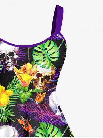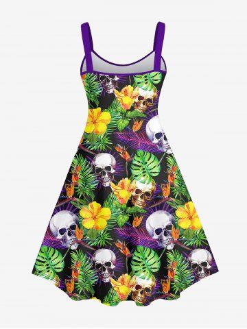 Plus Size Skulls Flower Palm Leaf Print Hawaii Tank Dress - Multi-a - 6x