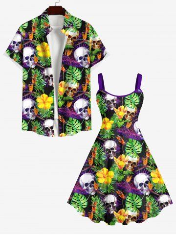 Graphic Dresses > Plus Size Skulls Flower Palm Leaf Print Hawaii Tank Dress