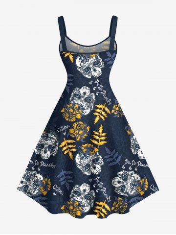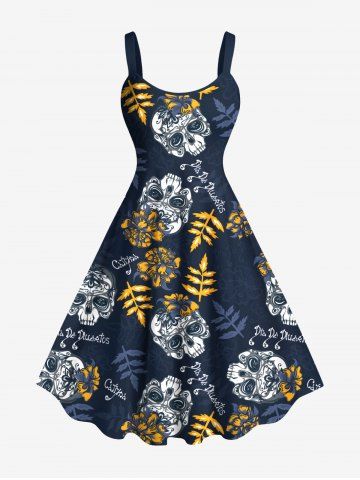 Graphic Dresses > Plus Size Skulls Flowers Leaf Print Hawaii Tank Dress