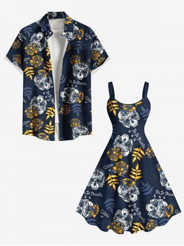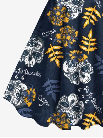 Plus Size Skulls Flowers Leaf Print Hawaii Tank Dress - Black - L