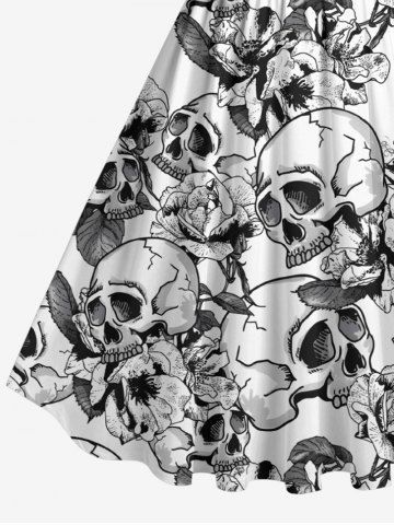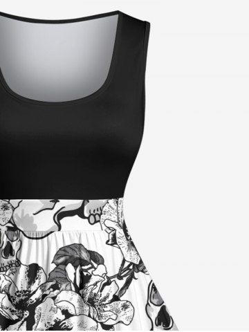 Plus Size Skulls Flowers Print 1950s Vintage Hawaii Dress - Black - 1x