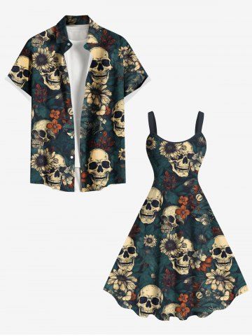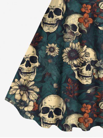 Plus Size Skulls Flowers Print Hawaii Tank Dress