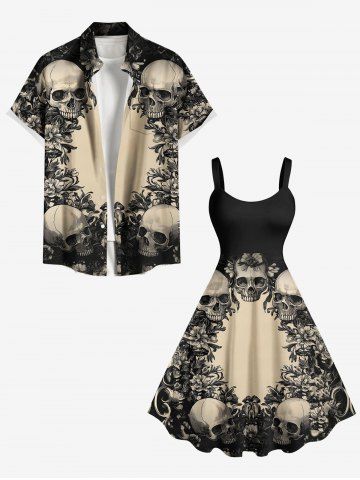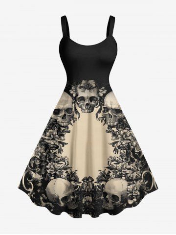 Graphic Dresses > Plus Size Skulls Flowers Print Hawaii Tank Dress