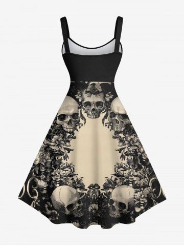 Plus Size Skulls Flowers Print Hawaii Tank Dress - Black - 4x