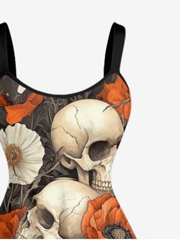 Graphic Dresses > Plus Size Skulls Flowers Print Hawaii Tank Dress