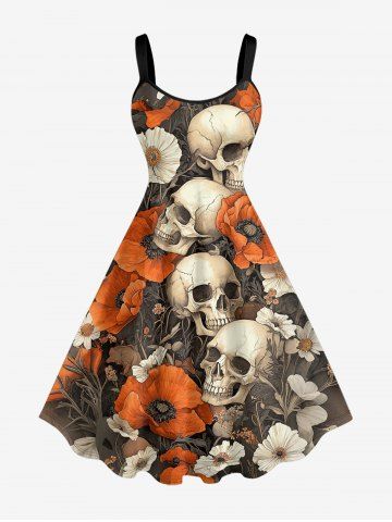 Graphic Dresses > Plus Size Skulls Flowers Print Hawaii Tank Dress