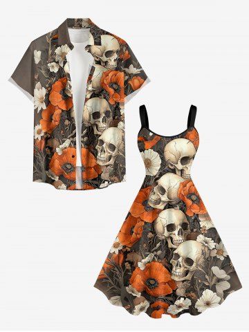 Plus Size Skulls Flowers Print Hawaii Tank Dress - Brown - Xs