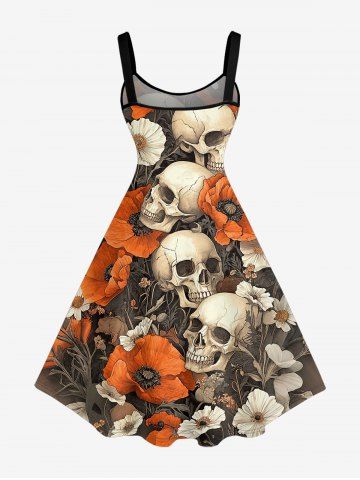 Graphic Dresses > Plus Size Skulls Flowers Print Hawaii Tank Dress
