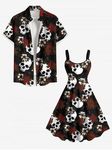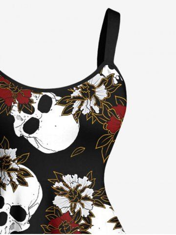 Plus Size Skulls Flowers Print Tank Dress - Black - Xs