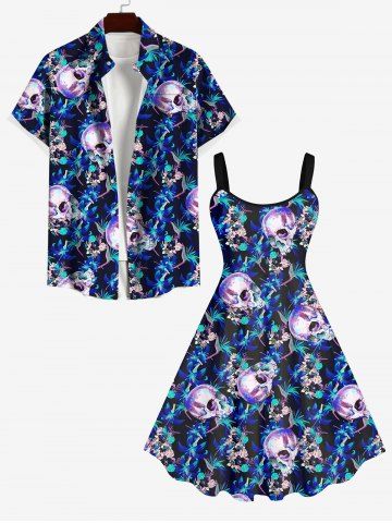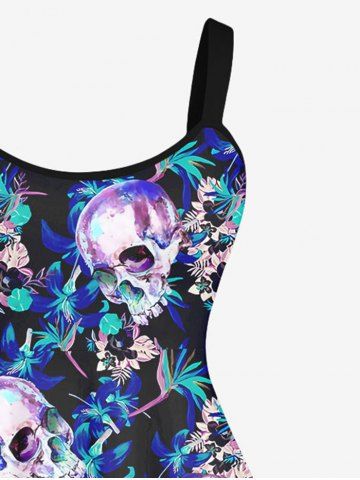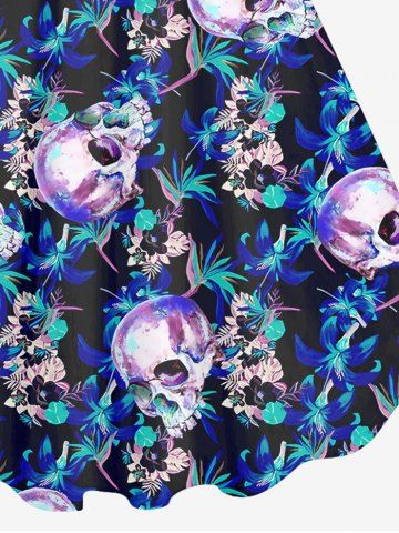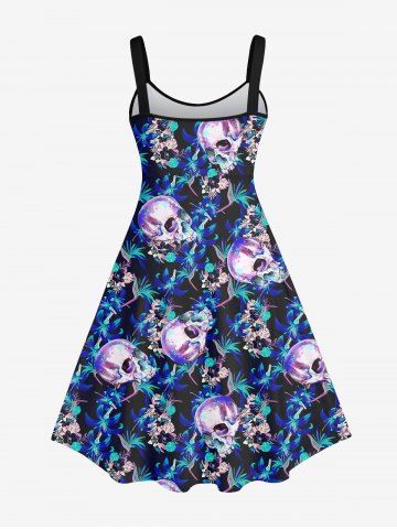 Plus Size Skulls Glory Flower Print Hawaii Backless A Line Tank Dress - Multi-a - 1x