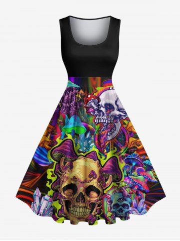 Graphic Dresses > Plus Size Skulls Mushroom Print 1950s Vintage Hawaii Tank Dress