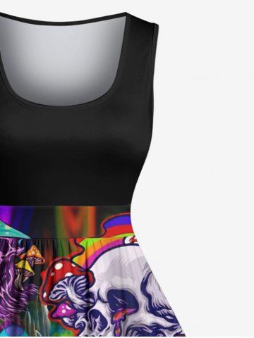 Plus Size Skulls Mushroom Print 1950s Vintage Hawaii Tank Dress - Black - 1x