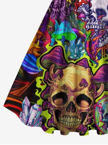 Graphic Dresses > Plus Size Skulls Mushroom Print 1950s Vintage Hawaii Tank Dress