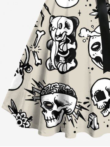 Plus Size Skulls Rose Flower Moon Diamond Print Buttons Turn Down Collar Hawaii Dress With Belt - Beige - 3x