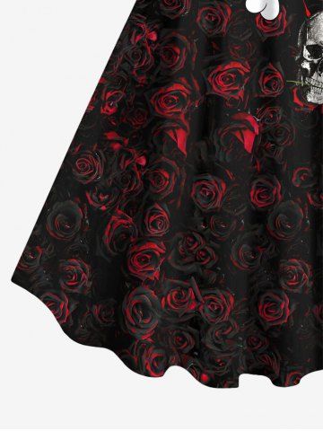 Graphic Dresses > Plus Size Skulls Rose Flowers Heart Skeleton Print Tank Dress