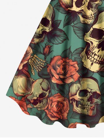 Plus Size Skulls Rose Flowers Leaf Print Hawaii Tank Dress - Green - 1x
