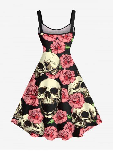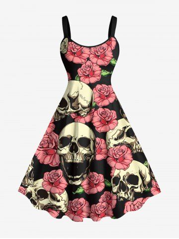 Graphic Dresses > Plus Size Skulls Rose Flowers Print Hawaii Tank Dress