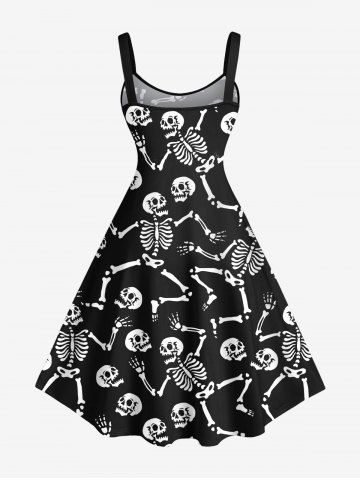 Plus Size Skulls Skeleton Print Tank Dress - Black - 5x