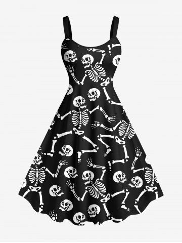 Graphic Dresses > Plus Size Skulls Skeleton Print Tank Dress