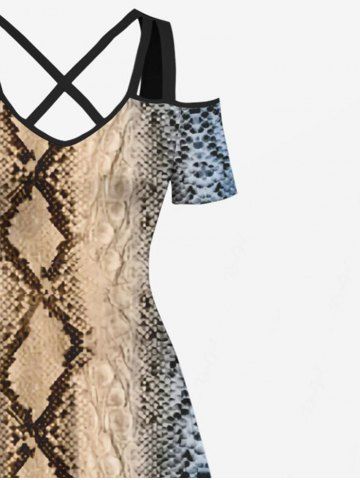 Graphic Dresses > Plus Size Snake Pattern Geometric Textured Print Hawaii Cold Shoulder Crisscross A Line Maxi Dress