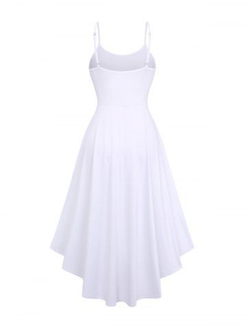 Plus Size Solid Ruched High Low Backless A Line Cami Dress (Adjustable Shoulder Strap) - White - M
