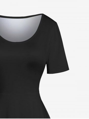 Plus Size Solid Vintage A Line Mini Dress - Black - S