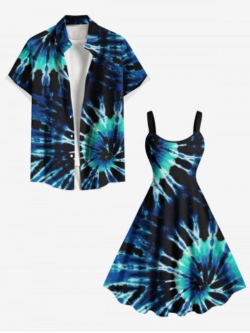 Graphic Dresses > Plus Size Spiral Tie Dye Print Hawaii A Line Tank Dress