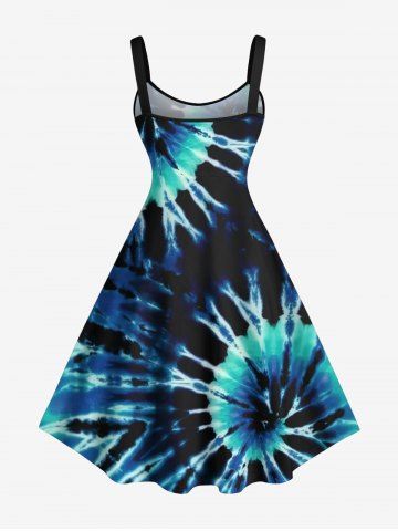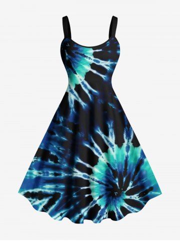 Plus Size Spiral Tie Dye Print Hawaii A Line Tank Dress